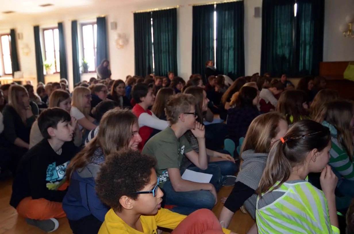 Ein Lipdub wurde von der Tigris vor 2 Jahren produziert und die Lay inszenierte im vergangenen Jahr das Schwarzlicht-Tanztheater. Was ließ sich Isar in diesem Jahr einfallen? Sechs verschiedene Projekteergebnisse konnten die JiS-ler am Ende in der Aula begutachten. So entstand ein JiS-News-Film, ein Hörbuch, zwei Videos nach relativ bekannten Songs, ein Fotobuch mit berühmten Persönlichkeiten, die selbst in Szene gesetzt worden waren sowie ein Fotobuch mit unterschiedlicher Mimik.