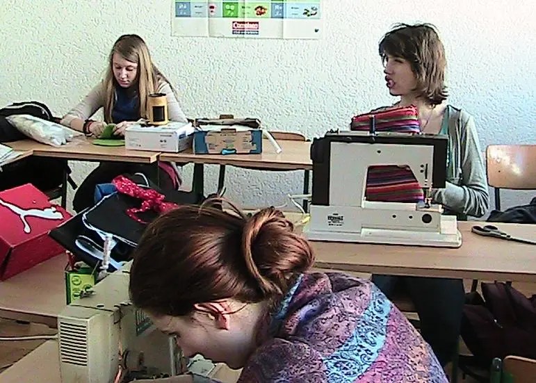 Unter Leitung von Claudi Arzt nähen Lina Wegener, Natalie Schulz, Johanne Lüdemann, Sinja Kuhl, Marlene Wiegand, Sonja Felkl, Rebecca Marquis, Ayla Ottmüller, Alina Jürgens, und Linn Nilsson die verschiedensten Sachen.